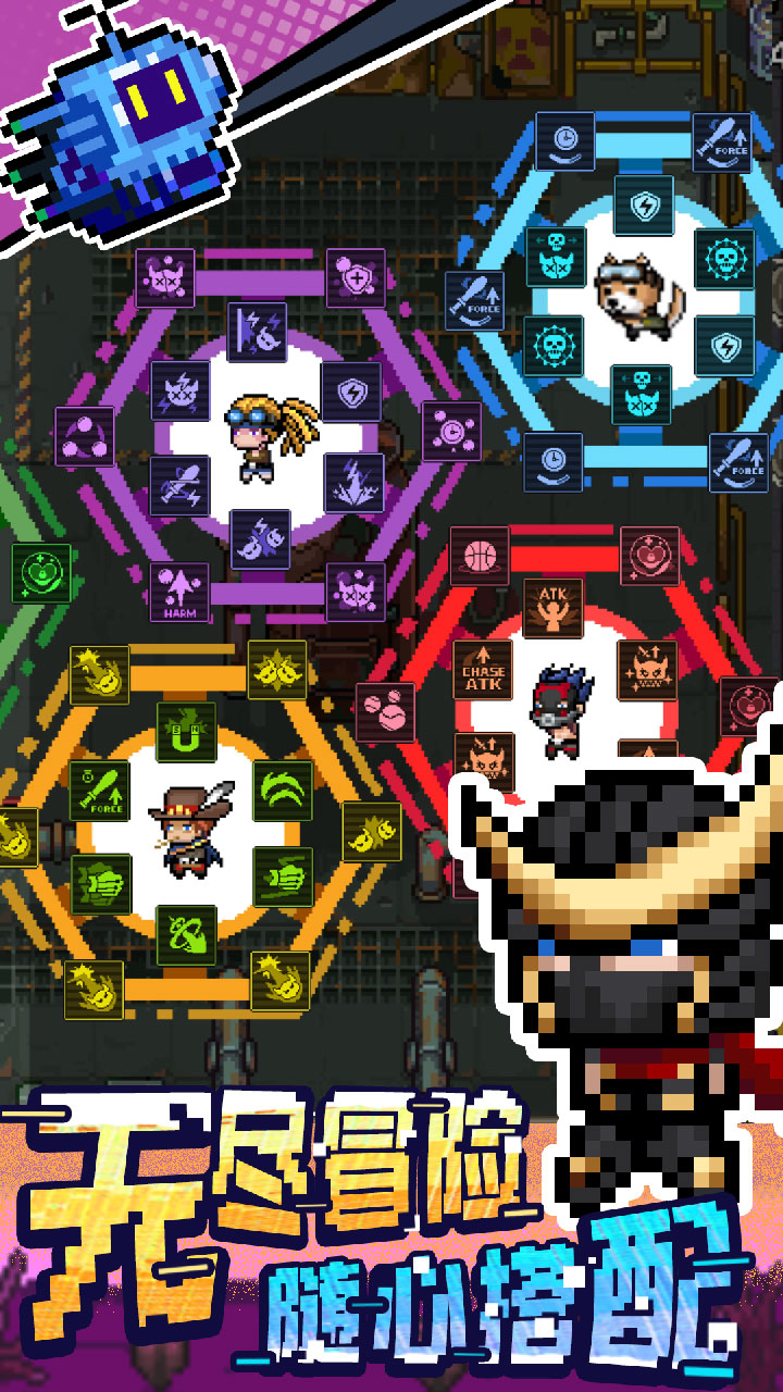 1.特色的射鸽玩法。玩家可以不断解锁更强大的角色一起战斗冒险,享受更多乐趣。