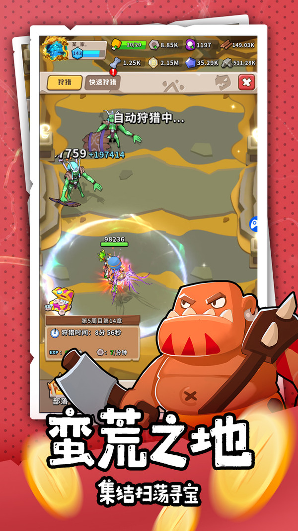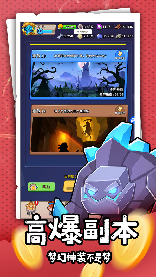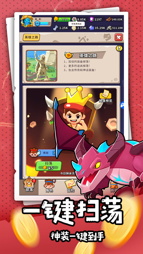 你将从关卡中获得大量装备,并与房子的无限输出相结合,你将能够增强独特的稀有装备,从而大大提高你的生存能力并实现一击必杀的提升。随着你的成长,游戏的难度也会增加。成为最强的道路总是充满曲折。快来征服这片原始森林吧!