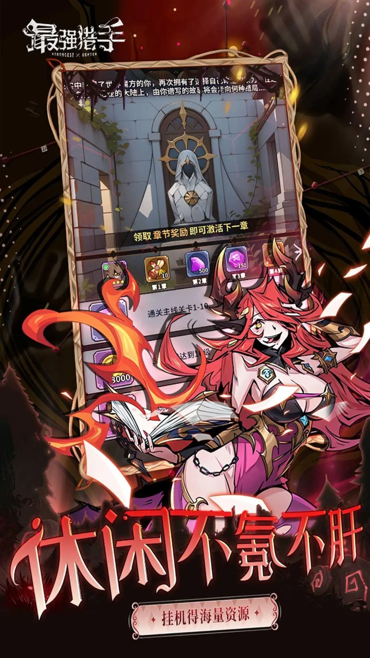 最强猎手是一款风格独特的暗黑卡牌类手游,在这里准备了近百位的个性化的英雄,玩家在这里随时随地展开收集,丰富的游戏副本,不肝不氪的去进行轻松的放置,不同性格的玩家在这里都能获得满意的服务,神秘的大陆展开自由的冒险之旅!而且最强猎手游戏里面很大卡牌都是根据神话角色进行设计的,你能够根据自己的理解去自由的进行阵容的搭配!