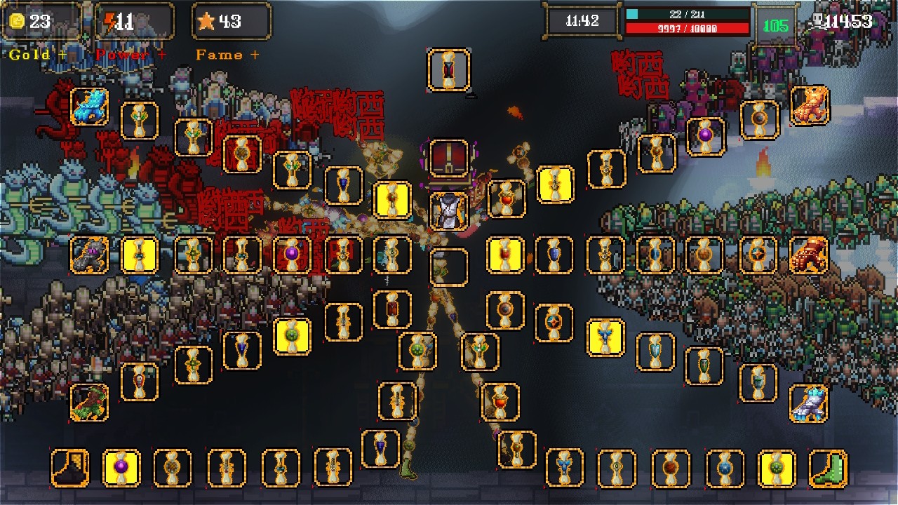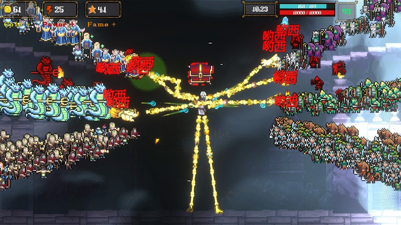 2.激发战斗力。在这款横向卷轴吸血鬼幸存者游戏中,您将变成一具仅由头骨和身体组成的骷髅。