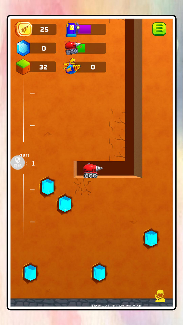 【提升】玩家可以通过升级与强化,来将钻头的属性提升,以此来增加挖掘的效率。
