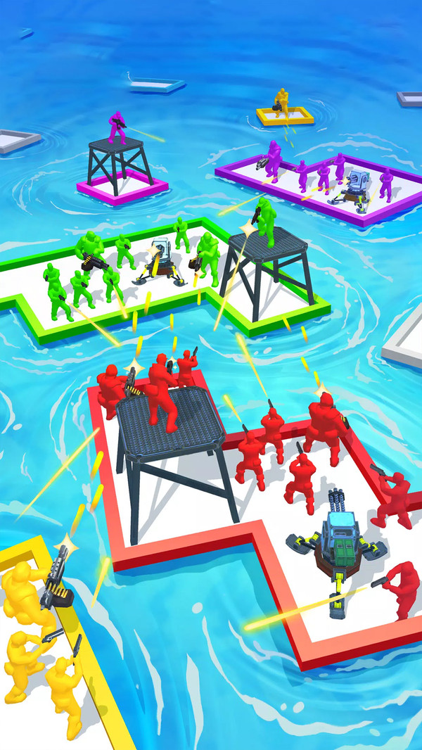 火柴人的冒险是一款采用橡皮人风格打造的手游,该游戏融合了大逃杀,生存,射击,策略等等元素的手游,不断的扩大自己的领土和团队,选择适合的颜色来加固自己的木筏,你能够从救生圈里面拾取火柴人,让你的团队变得更加强大!你的船员变得越多,在海战之中生存的机会也就越大,还能收集防御塔来增加自己的实力,感兴趣的玩家就来试一试火柴人的冒险!