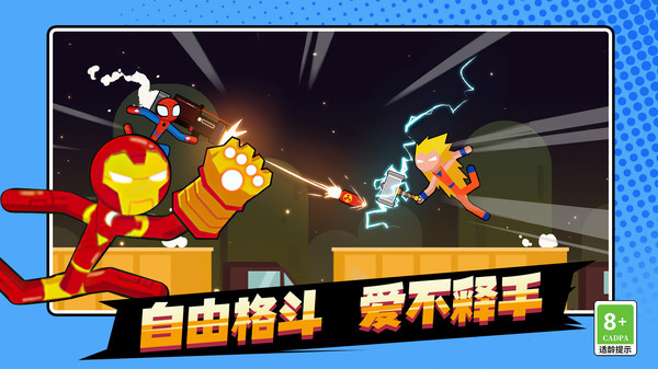 超神火柴人逃脱是一款火柴人题材的动作格斗类手游,在这里你将来到一个充满策略性和挑战性的竞技平台。而且该游戏准备了很大特色皮肤,各种各样的超英皮肤在这里让你来解锁并且选择,层出不穷的玩法,舒适的游戏环境,掌握更多的战斗方式,多种多样的场景地图设计的非常完善,随机战斗非常的有趣,喜欢自由格斗游戏的玩家就来试一试超神火柴人逃脱!