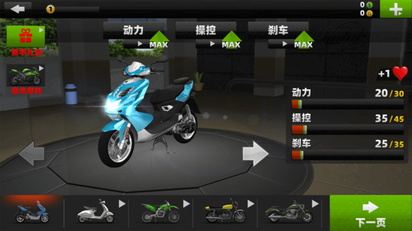 1.你可以选择最强大的摩托车来比赛,疯狂的赛事等着你。