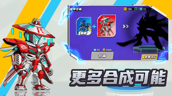 1.战斗中可以自由变换形态,升级、组装机甲、机甲龙的部件。