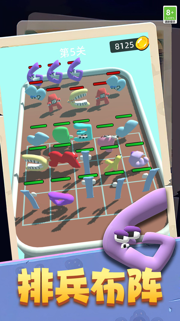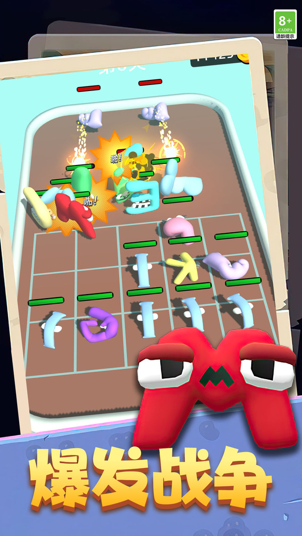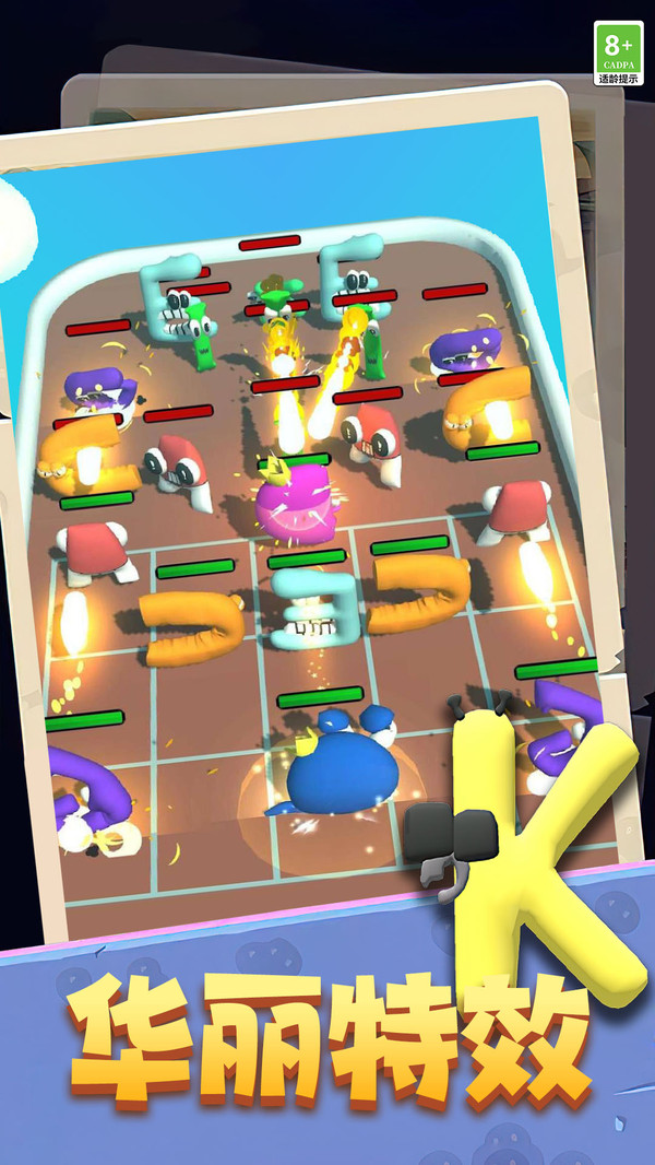 在不服就盘他里面合并强大的字母怪兽进行战斗,游戏包含了诸多的关卡和挑战模式,每一个关卡都拥有独特的敌人,玩家需要不断的合并来提升自己字母怪兽的实力,游戏上手非常的简单,上手游戏非常的轻松,操作无难度!不服就盘他支持自由的战术布置,随时随地都能轻松的上手进行挑战,更多的策略和合并技巧让这款游戏更加的精彩有趣!