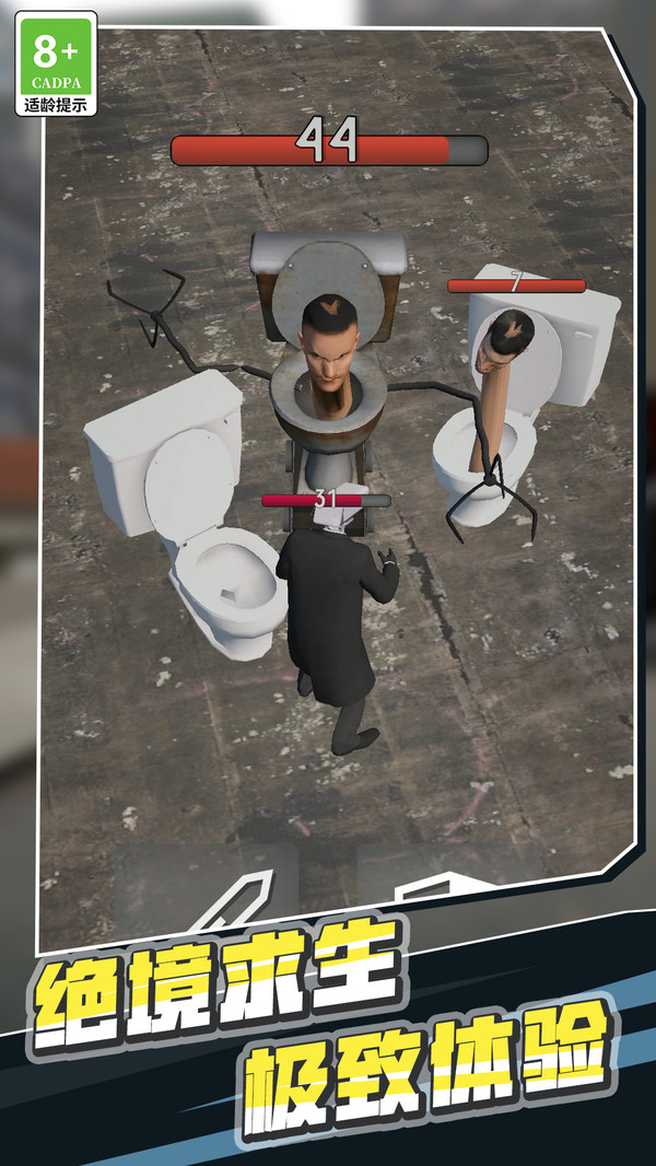 3. 角色进化:通过收集道具和完成任务来获得经验值,提升马桶人的等级,解锁更多技能和装备,增强战斗能力。
