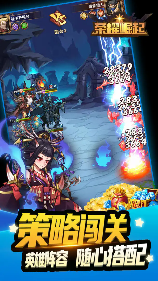 2.策略卡牌战斗:核心玩法是策略卡牌战斗。玩家需要收集各种强大的卡牌,组建自己的战斗队伍,并在战斗中运用合理的策略与对手对抗。
