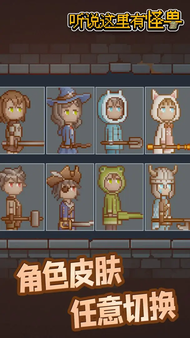 听说这里有怪兽是一款采用优质像素风格打造的放置挂机类游戏!该游戏打造了一个庞大的兽魂大陆,在这里准备了永远也杀不完的怪兽,而且在大陆的深处还隐藏着无尽的财富和矿产,玩家需要利用自己的智慧和勇气在危机四伏的大陆上生存下去,全新的游戏玩法,海量的游戏副本,非常适合玩家在无聊的时候进行愉快的探索和冒险!听说这里有怪兽里面为你的角色准备了完善的武器库,让你能够选择适合自己的武器进行战斗!