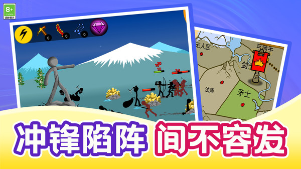 2.多种刺激的游戏模式任你选择。你可以自由组合搭配火柴人士兵,展现你的策略能力,完成任务挑战。