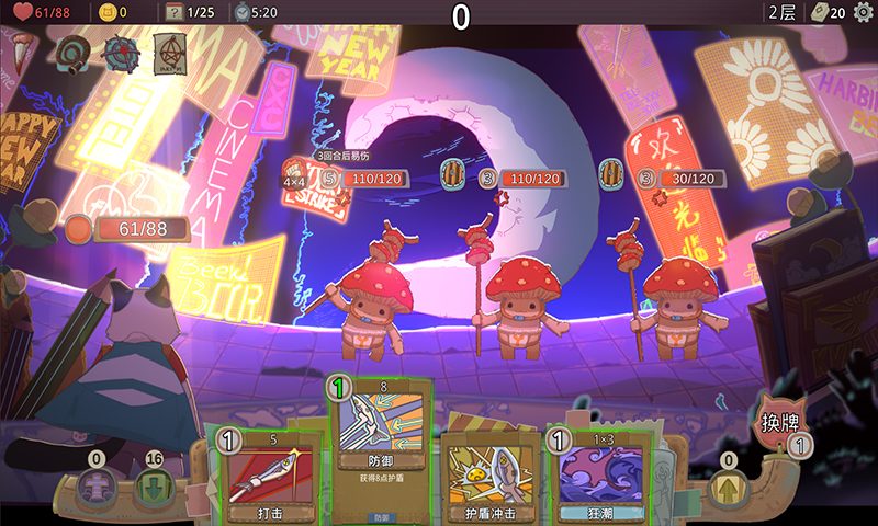 在游戏中,你控制动物主角与卡牌战斗,获胜,并获得具有强大被动效果的新卡牌和神器。