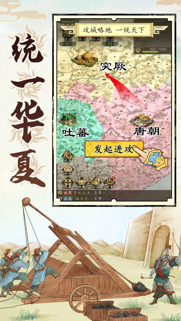 玩家可以与其他玩家联手争夺长安,建立自己的霸业。通过战略部署、出兵等操作,决定英雄,实现统一世界的梦想。