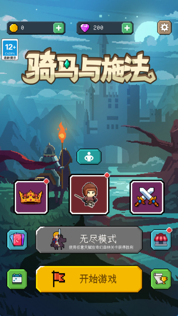 骑着骏马,在这个像素风格的世界中畅游,面对各种敌人,通过施法来战胜它们。