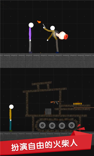 这个游戏与其他游戏不同。没有教程、作业,甚至没有敌人。游戏中的一切都需要你自己设计,玩家甚至可以添加自己的场景和模块,给游戏带来无限的可能性。经典的火柴人画面,简单的主题游戏画面,供玩家自由创作,庞大的游戏世界以黑暗和黑色为主。游戏中,玩家可以控制汽车等工具,控制时间与敌人进行交易,控制简笔人物自由进入世界,随意创造或破坏。