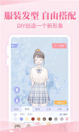 装扮物语是一款简单有趣的装扮模拟游戏,各种的服装发型可以自由进行搭配,diy创造出自己想要的人物形象,不断尝试全新的造型,包含有各种的妆容能够切换,其中还能够查看到别的玩家们的装扮方式,将自己满意的搭配方式保存下来,趣味多多!