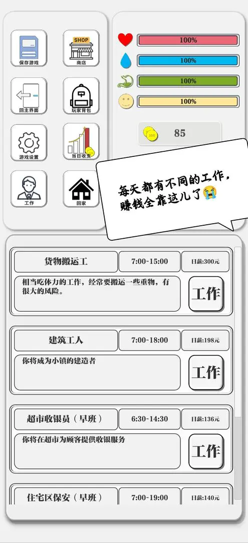 4.包含的工作种类特别多样,不同工作的奖励也不同。