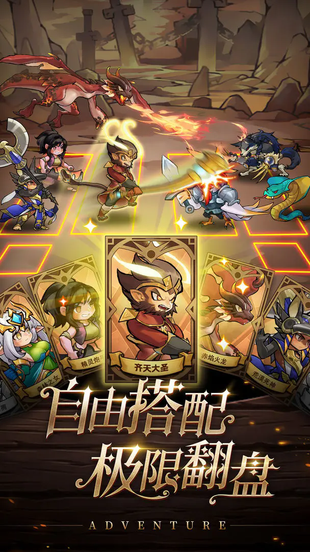 五大种族,近百位英雄随心养!一键换将,无损继承,轻松换卡0损耗。尽情组合,随时上阵!