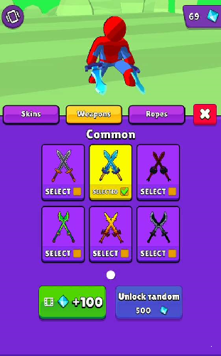 杀死的橡胶巨人越多,获得的钻石就越多,可以兑换更多的双刃武器。