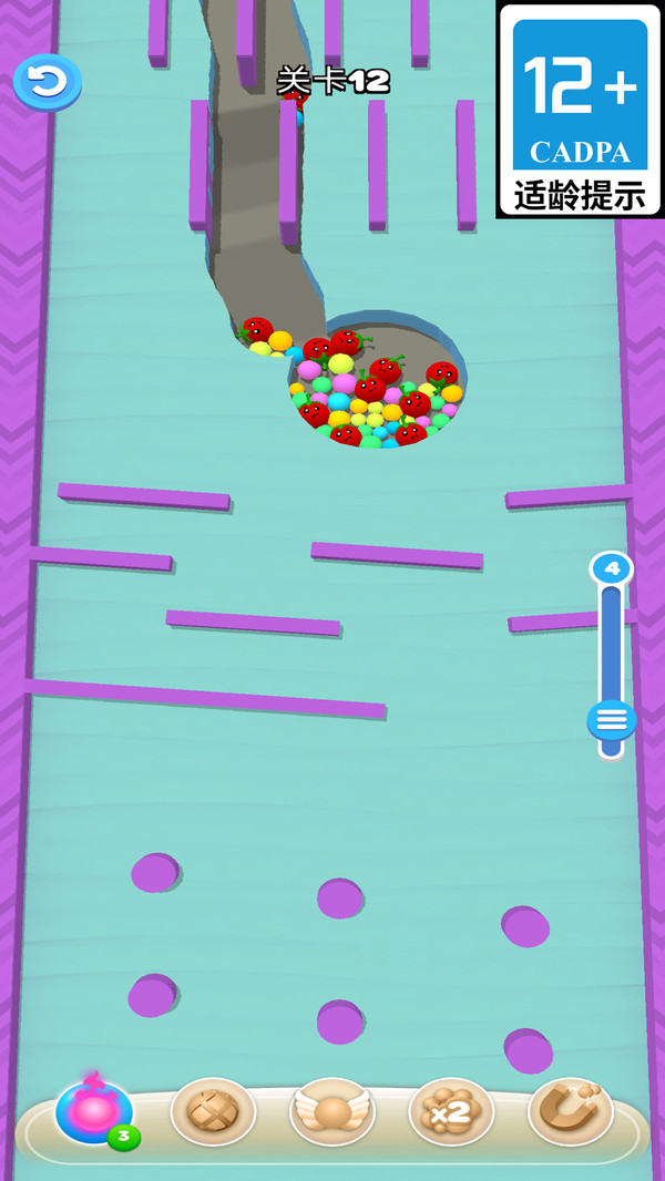 3.各种道具:游戏提供了多种道具,包括加速道具、减速道具、盾牌道具。根据实际情况,玩家可以使用各种道具更快地收集球或应对障碍物。