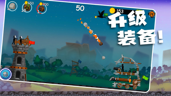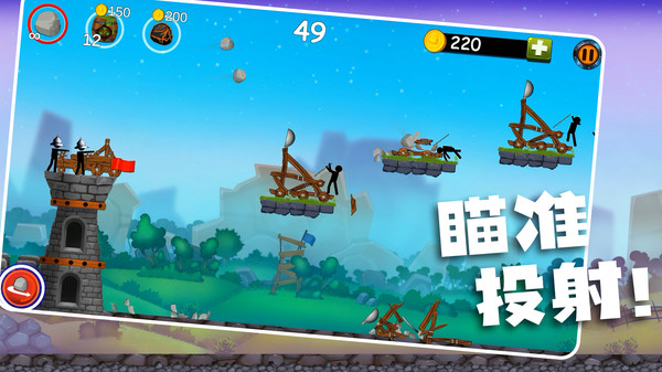 火柴人很酷堡垒对决游戏是一款很棒的火柴人题材的手游,在这里主打的就是各种各样的塔防闯关类游戏,玩家需要发射子弹来击败你的敌人,从诸多的攻城武器里面选择适合的武器来捍卫自己的堡垒,多种多样的技能搭配,诸多的装备自由的选择,玩家能够和自己的好友一起组队挑战,战胜敌人还能收集到诸多的金币来提升你的炮弹威力!