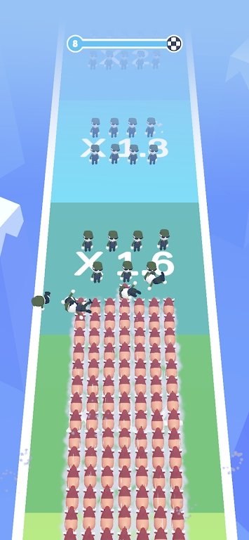 2.玩家必须操作通道改变动物数量,巧妙躲避小人的攻击,保证动物队伍的完整性。