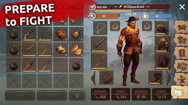 3.玩家可以通过打造海上最先进的武器和盔甲,从基本的服装到强大的枪支,成为强大的海盗。