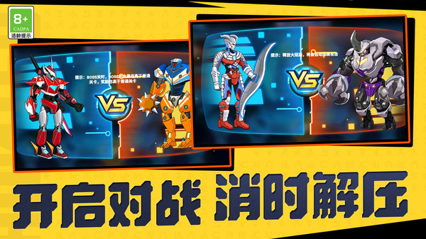 变身超级机甲,踏上更多有趣、刺激的挑战和冒险。一场消灭各种机甲怪物的无尽战斗任务即将到来。