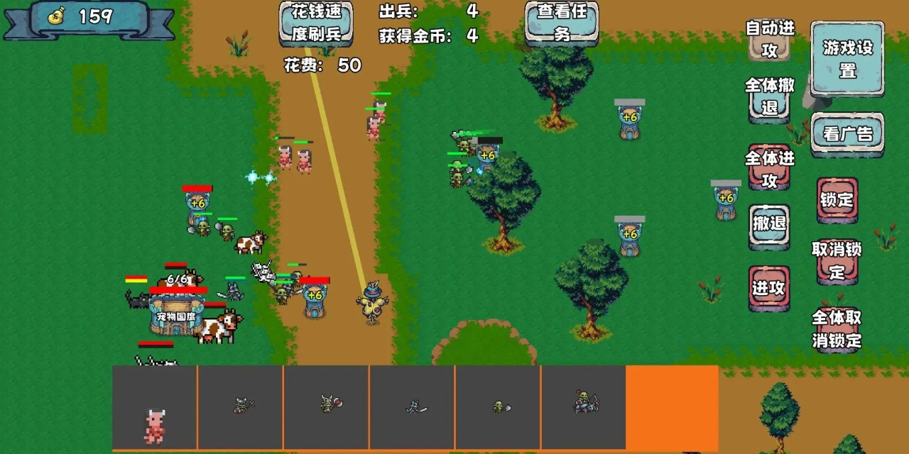 1. 玩家可以自行建造和搭配专属小军队。