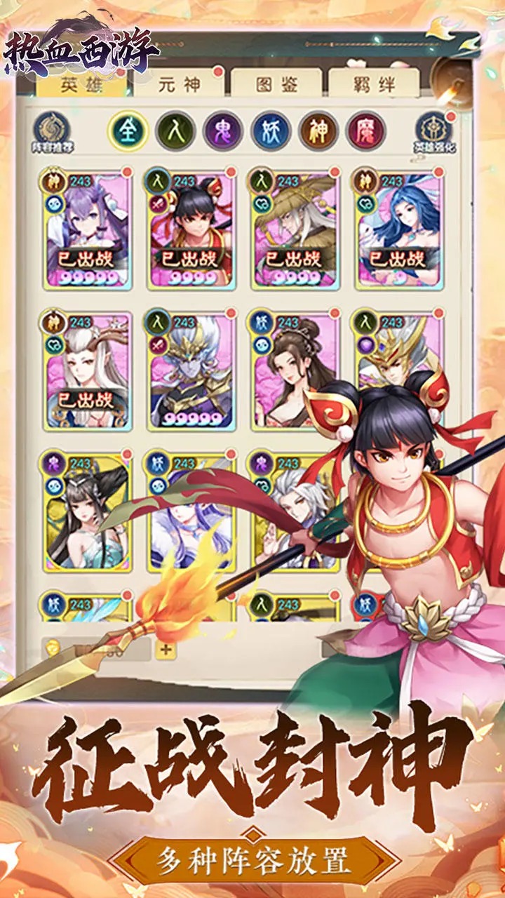 热血西游手游官网版是一款架空玄幻世界的放置类手游,在这款游戏之中准备了诸多的英雄,玩家能够自由的DIY自己的专属阵容,开启完全不同的阵容进行战斗,丰富多样的游戏副本,多种多样的技能搭配,策略配合非常的观前街,各种有趣的玩法应有尽有,精致的国风画面,身后的奇幻背景,经历一场场经典故事的考研,在熟悉的世界里面自由的冒险!