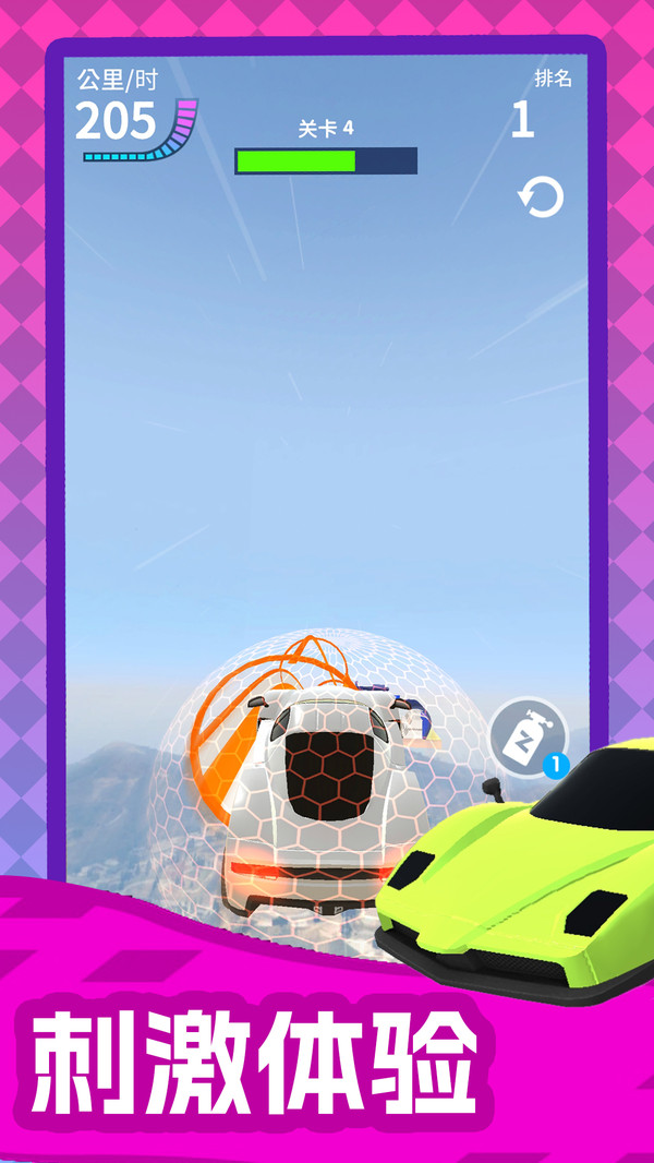 3.打造您自己的定制赛车并解锁新道具以提升排名。