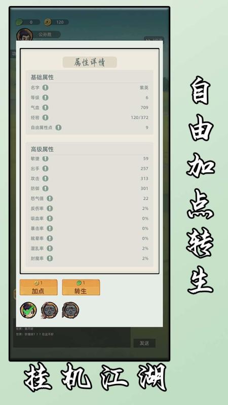 0转升一级有3点属性,1转4点、2转6点,可以加体、力、敏,1体=3防御、1力=3攻击、1敏=3出手,60级前免费洗点,普通攻击伤害效果=攻击-防御。