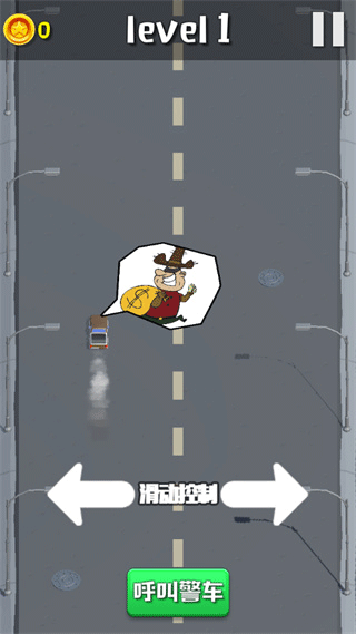 1.手指在屏幕上向左或向右滑动,控制警车变道、躲避障碍物。
