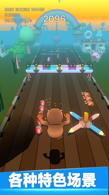 1.多种秋千、弹簧垫等独特设施等你使用,还有多种特殊路段设计,将大大提高你的速度,帮助你快速完成挑战。