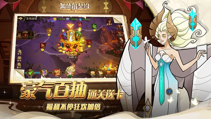 围绕《加德尔契约》大陆核心的就是卡牌啦,前期的巫毒很强哦~但我们的目标是能获得更多的强力卡牌,如何能获得强力卡牌呢,大家可以在契约法阵和远古祭坛中抽取卡牌,更有机会获得珍稀的上古魔灵,助你勇闯天下!