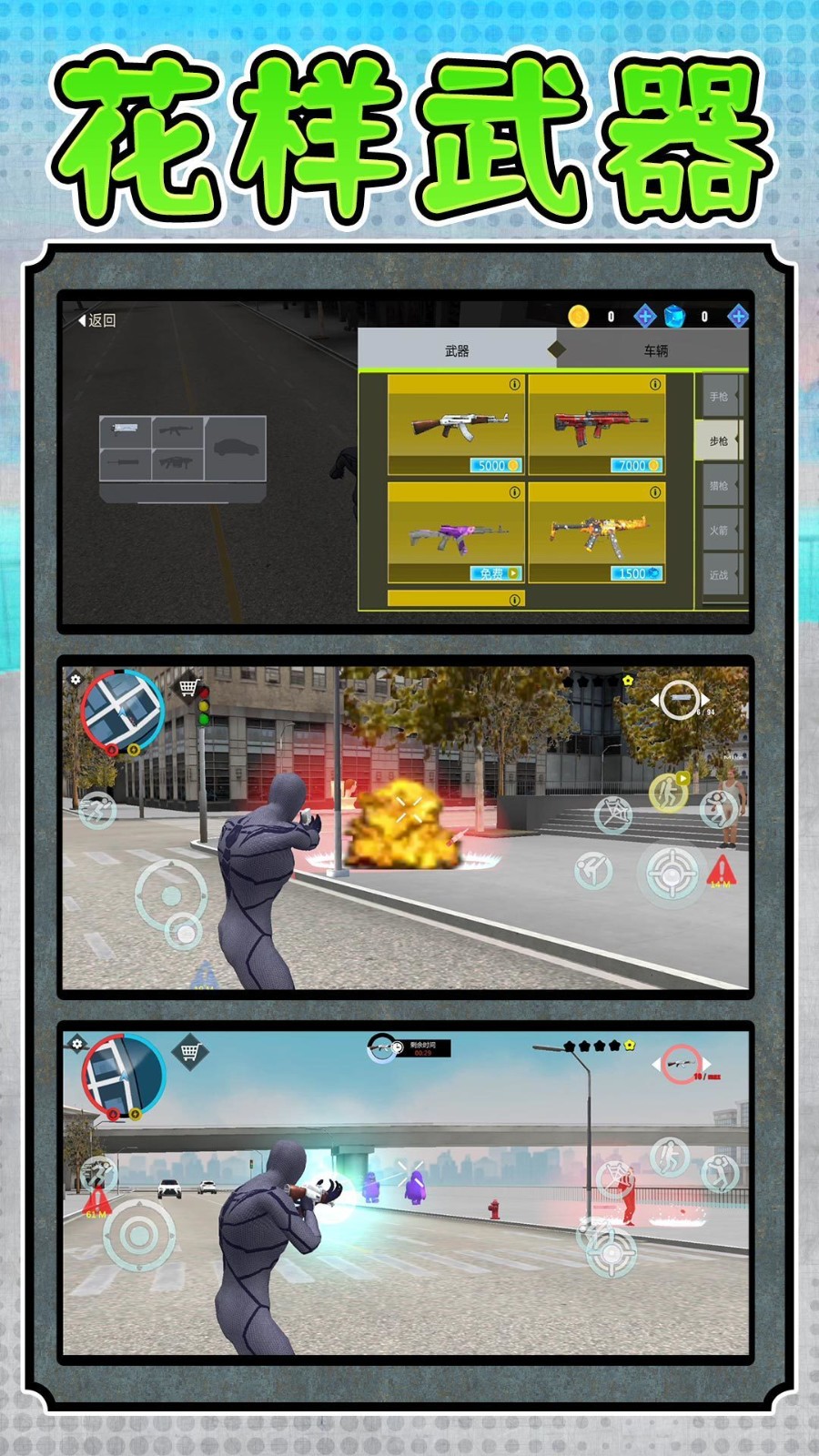 2.自由选择手枪、步枪、近战武器等武器装备,应对不同类型的僵尸。