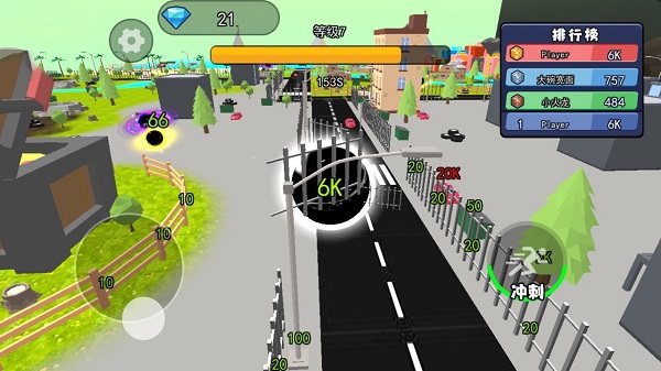 1、吞噬成长:玩家需要控制黑洞吞噬城市中的各种物品,如高楼大厦、街道车辆,甚至是行人,以此增长黑洞的体积和力量。