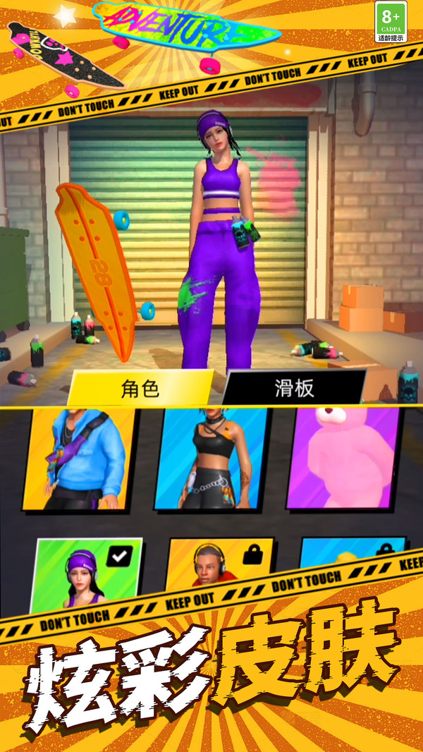 3.众多滑板和各种时尚皮肤等你解锁,轻松的游戏背景音乐让游戏设计更加完美。