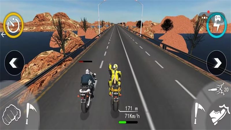 1、结合传统赛车竞速与战斗元素,形成独特的暴力摩托比赛。