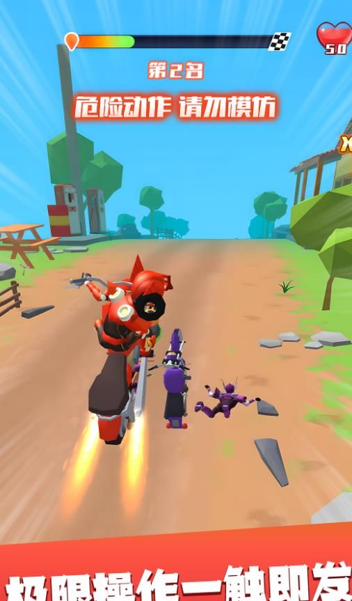 2、需精准操控摩托车躲避障碍,考验反应速度与驾驶技巧,提升挑战性。