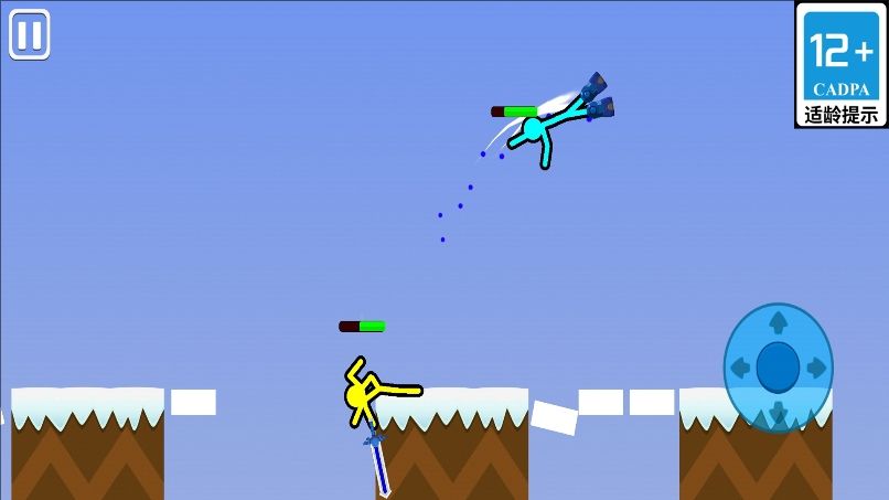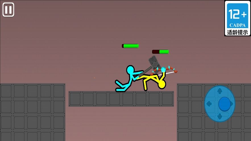 疯狂双人决战是一款洋溢着欢乐与激情的双人竞技游戏。玩家将化身为灵活的火柴人,进入充满不确定性的战场,展开一场狂野的对决。关卡中的场景会随机变换,从炽热的火山到寒冷的雪原,每个角落都蕴藏着惊喜和挑战。玩家需操控火柴人运用随机分配的武器对敌人发起攻击,直至敌人体力耗尽或诱使敌人陷入岩浆等危险地带,从而成功通关。喜欢的不妨来下载!