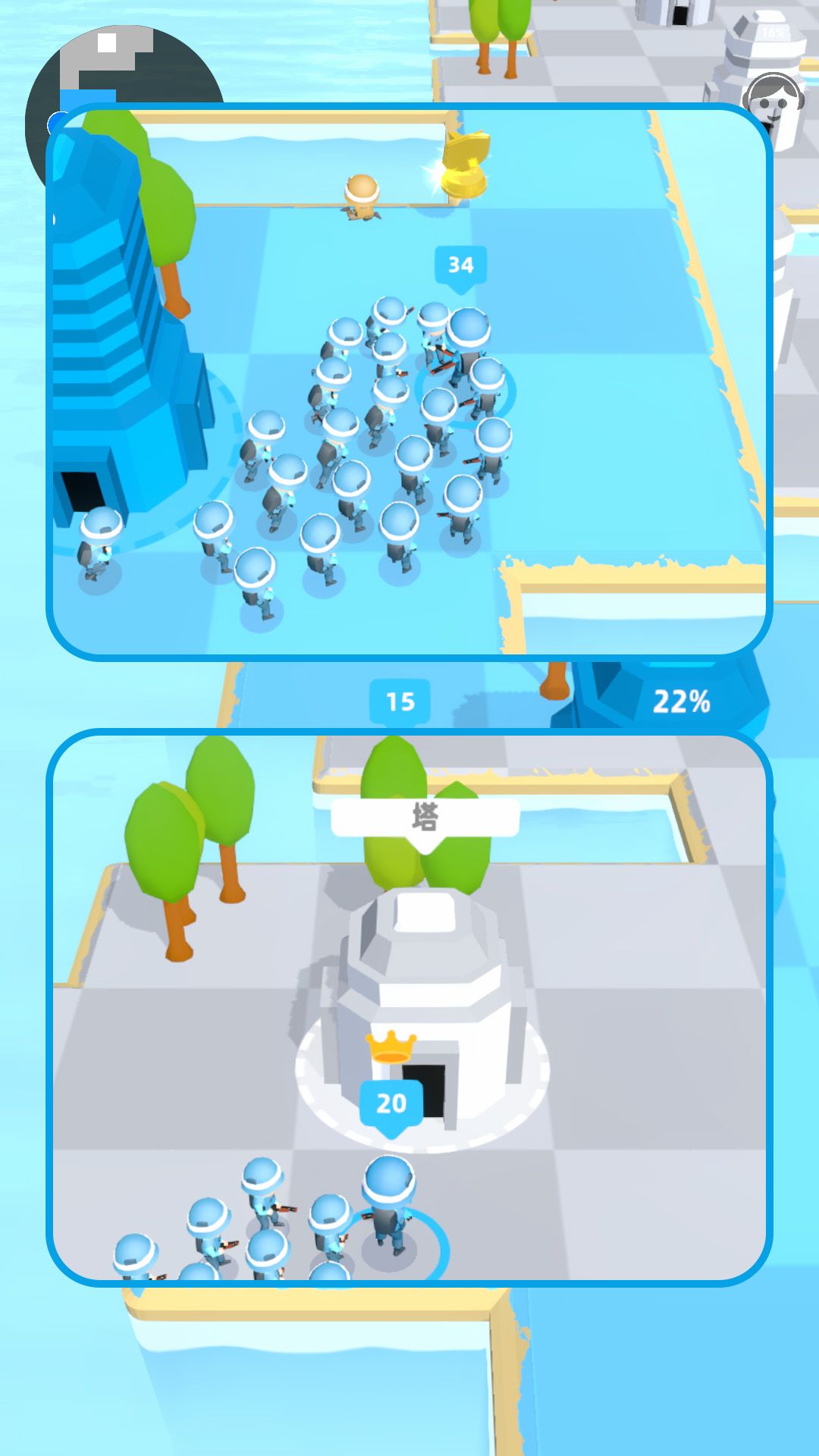 1、操控小兵进行攻击,占领基地,升级后挑战更强大的敌人。