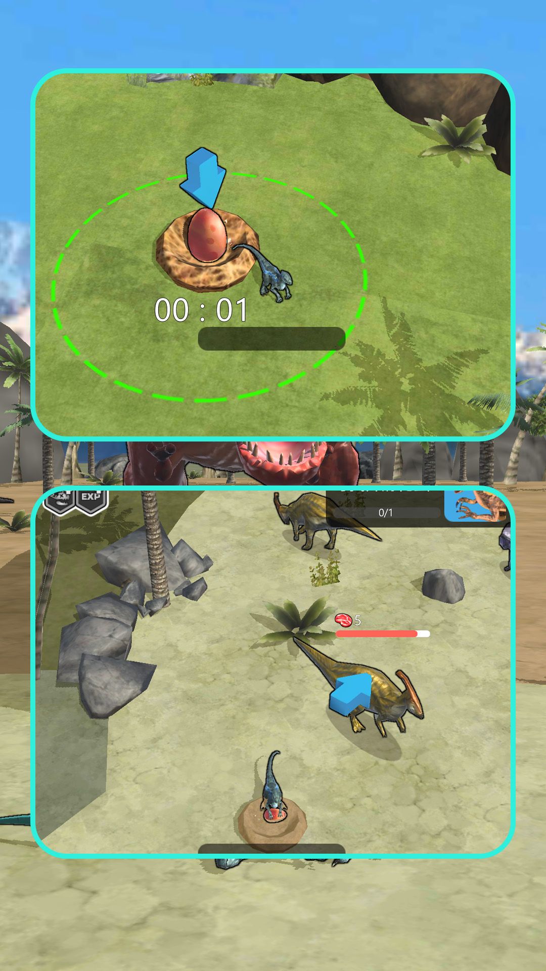 2、收集不同种类的恐龙蛋,孵化并训练它们,扩展自己的恐龙阵容。