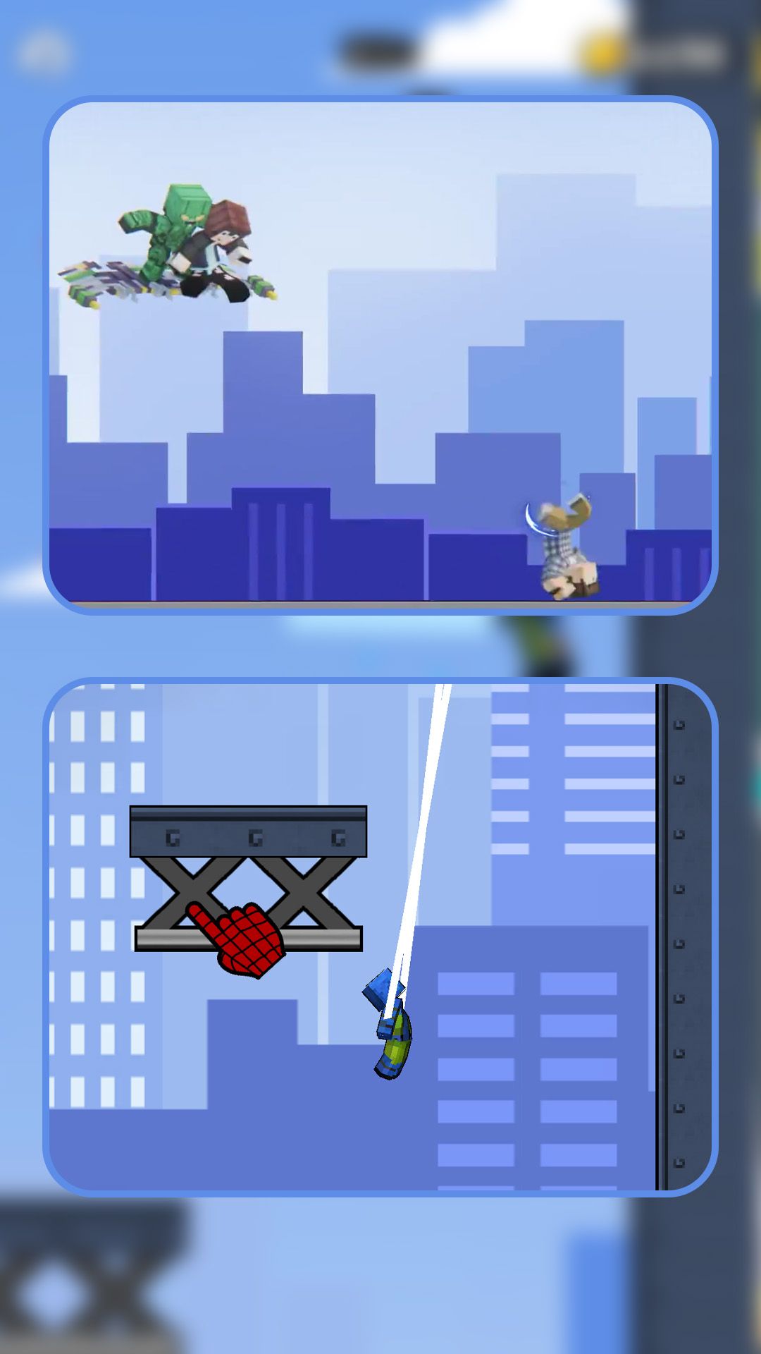 1、通过操作让蜘蛛英雄在游戏场景中攀爬、跳跃、荡蛛丝,快速移动到目标地点。