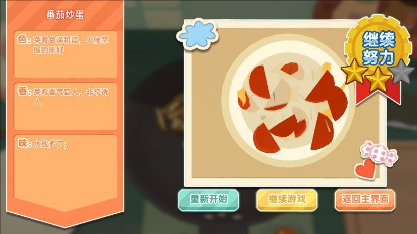3、完成烹饪后拍照发送给奶奶评分,根据评分结果决定是否重新开始。