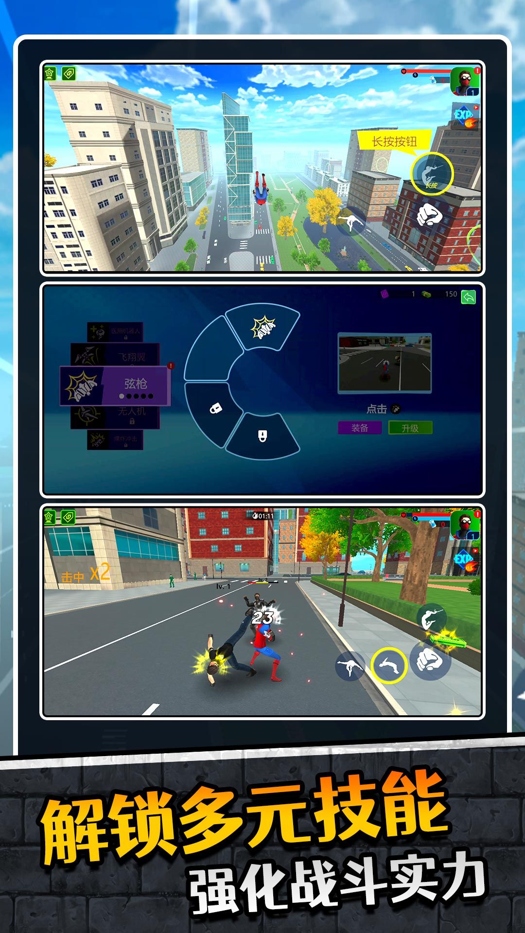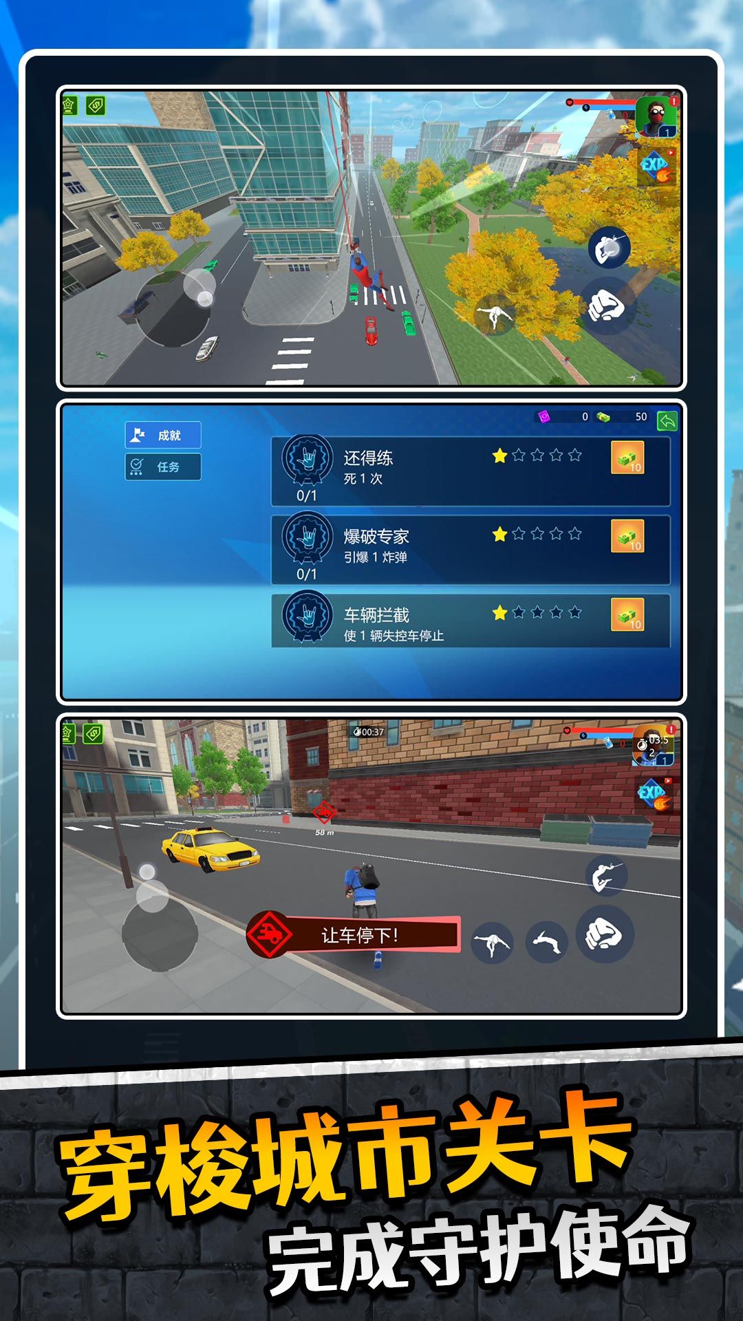 1、利用蜘蛛丝在城市中快速移动,体验飞檐走壁的快感比较的过瘾。
