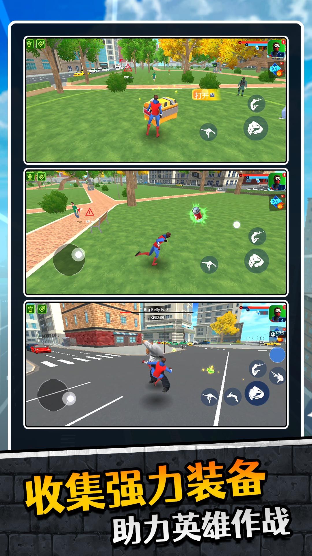 1、扮演蜘蛛人,在城市中自由穿梭,体验超级英雄的冒险,无比的精彩。