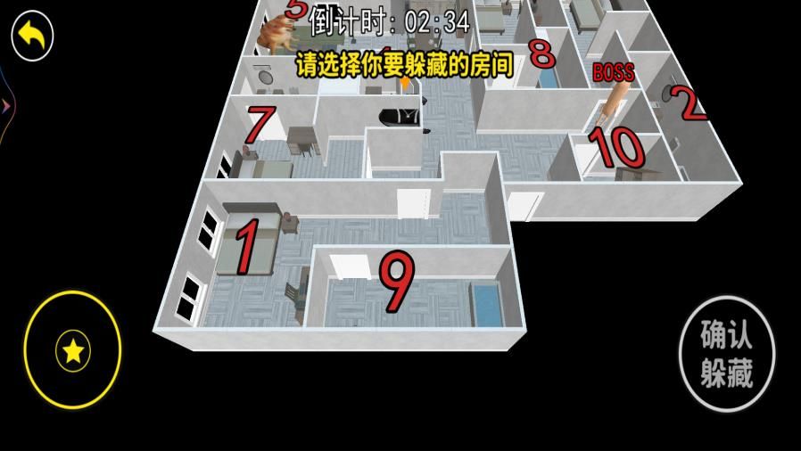 2、进入房间后,在倒计时结束前,迅速寻找房间内隐秘的角落进行躲藏。