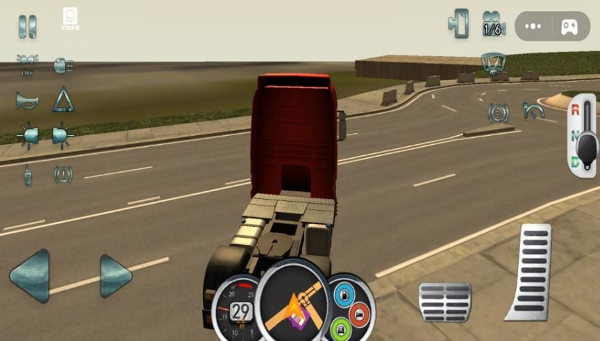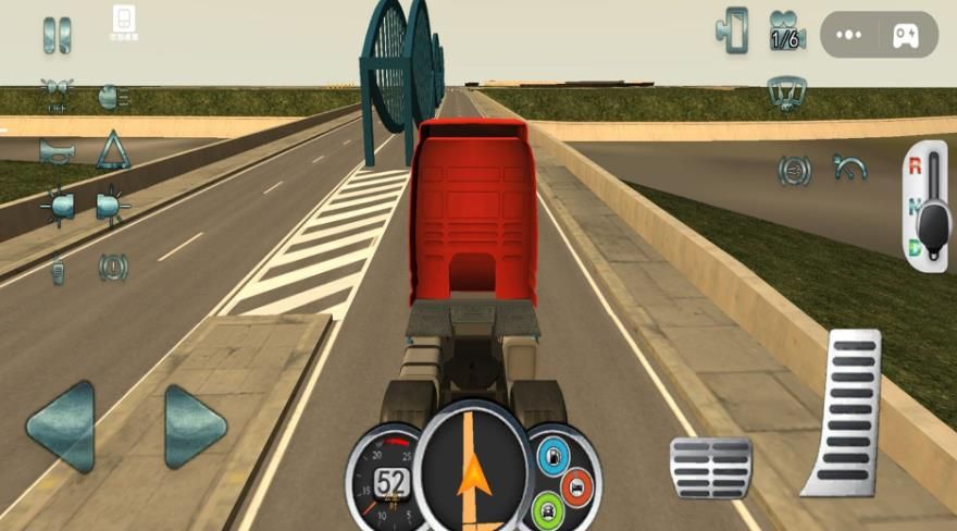 2、操控卡车在游戏场景中行驶,根据路况和导航提示,合理控制车速、换挡,遵守交通规则。