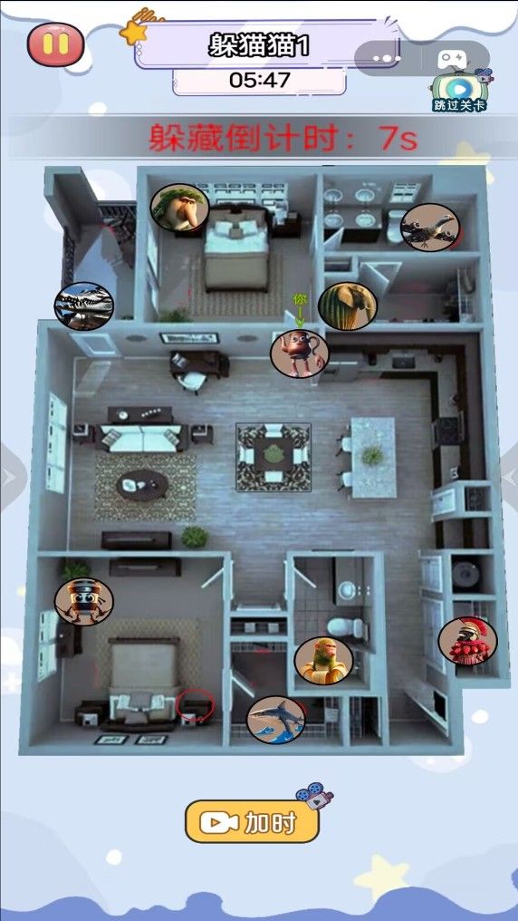 3、需要思考如何在有限的时间内找到最佳的躲藏地点,这比较的关键。