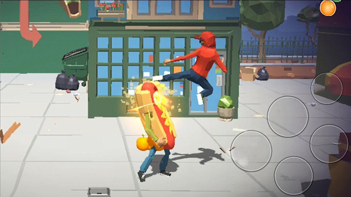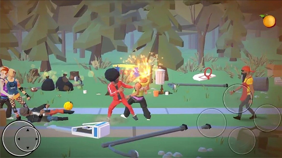 2、在街头场景中与帮派成员进行对战,通过拳打脚踢击败对手。